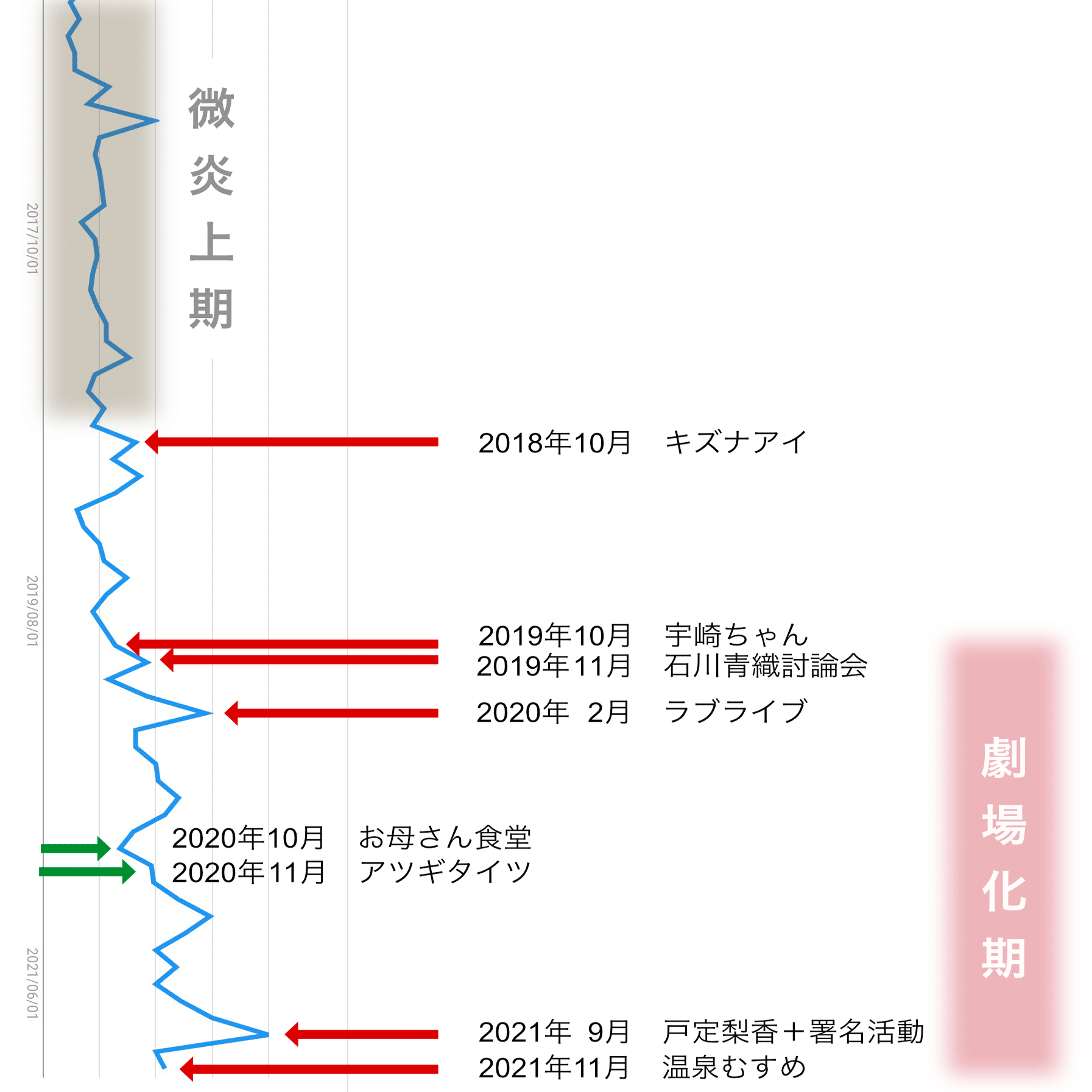 こうしてみるとラブライブ炎上の規模が異様に見えますが、これも石川青織討論会の余波を疑うことができそうです。