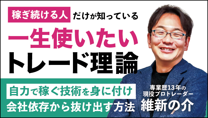 トレードの世界は、小手先の知識で勝ち続けることはできませんが、正しい基礎知識と技術を身につければ特別な才能や能力は必要ありません。この事実を知らずに、自分の好きなトレードの世界を退場していく人を一人でも減らしたい、という維新の介氏の思いがあり、今回こちらの書籍を無料で提供することになりました。