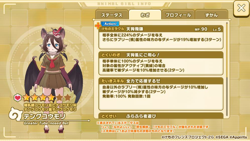 テングコウモリのステータス画面