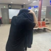 열심히 옷 입고 있는 그녀