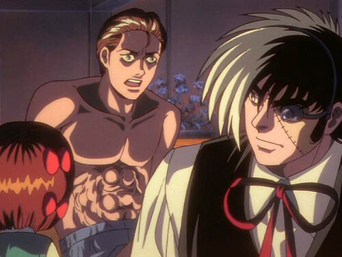 実業家の青年の腹部に人面瘡(OVAビデオアニメブラック・ジャックカルテ9人面瘡より)