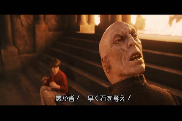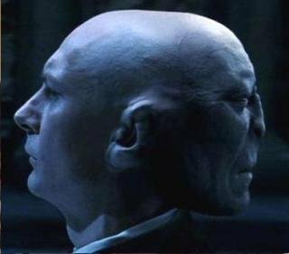 ホグワーツ魔法学校の闇の防衛術の教授、ウィリナス・クィレル先生のスキンヘッドの後頭部にヴォルデモート卿の顔が..(映画ハリーポッターと賢者の石より)
