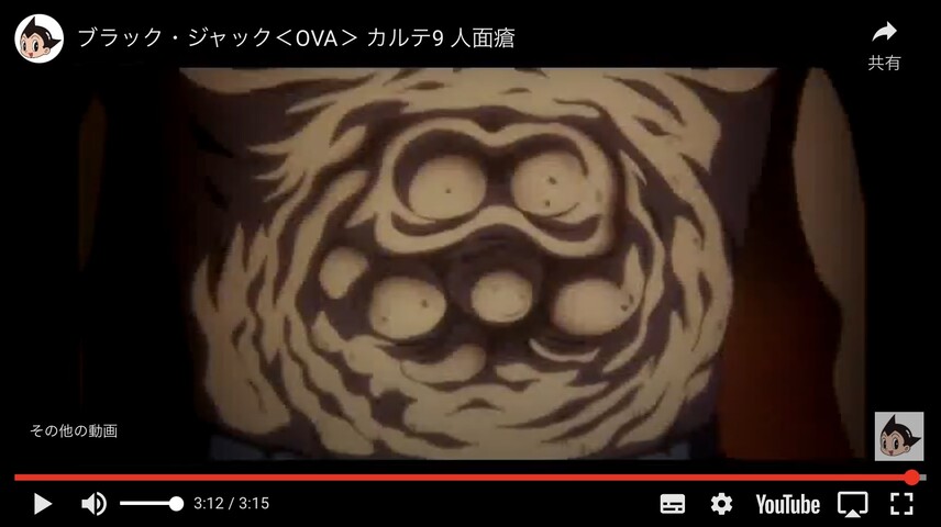 連続殺人犯の顔面に人面瘡(漫画ブラック・ジャック人面瘡より)