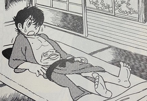 少年の腹部にカエルの顔の人面瘡(漫画ブラック・ジャック人面瘡より)