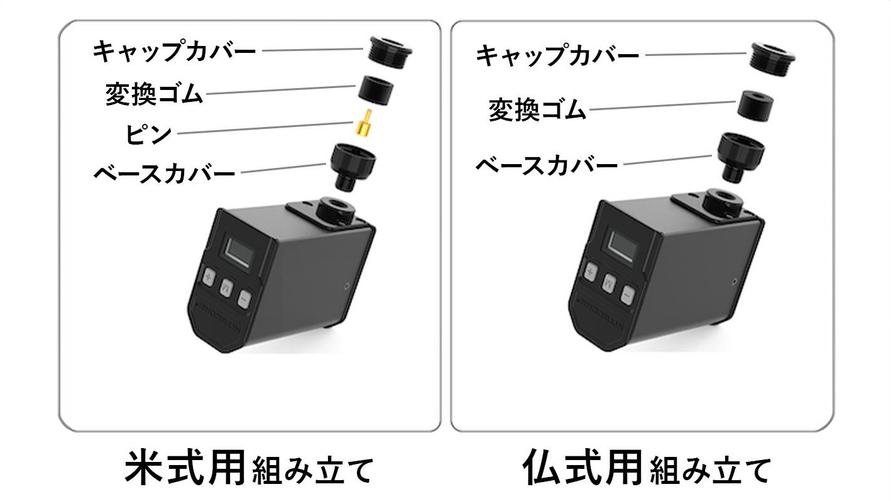 米・仏バルブに対応。英式はアダプタを