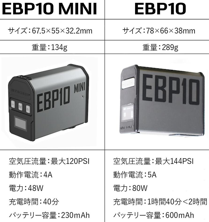 今回はより携帯性に優れた「EBP10 MINI」を試しましたが、一回り大きくてよりパワフル&スピーディに充填できる「EBP10」もラインナップされています。
