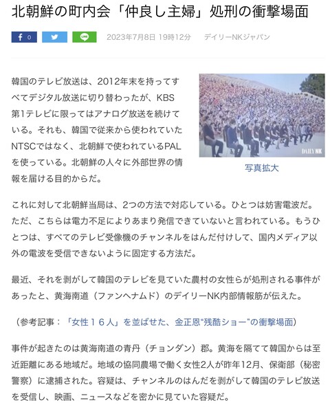 最近、それを剥がして韓国のテレビを見ていた農村の女性らが処刑される事件があったと、黄海南道(ファンヘナムド)のデイリーNK内部情報筋が伝えた。