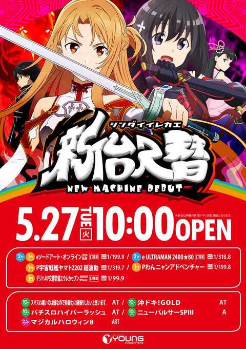 ![]() ヤングだけの4レート 2円パチンコ 1円パチンコ 10円スロット 2.5円スロット お楽しみください! ●●●最新入替●●● ![]() 10円スロット 押忍!番長4 Lシンフォギア 導入! 2円パチンコ スマパチ ユニコーン2 増台! スマパチ・スマスロ ユニット増台につき 一挙入替! 10月29日(火) AM 10:00 OPEN ※新台は13:30オープン(予定)です ●●●前回入替●●● ![]() ![]() ![]() 2円パチンコ 3機種 10円スロット 2機種 新台導入! 1円パチンコ 2.5円スロット 新機種登場! ●●●設置機種案内●●● ヤングだけ! 2円パチンコ スマパチ ユニコーン 再来 ![]() ![]() スマスロ 北斗の拳 パチスロ カバネリ 10円スロットに 設置中 ![]() ![]() ![]() 10円スロットで 打てる! ハッピージャグラーVⅢ ファンキージャグラー2 アイムジャグラーEX 合計20台 ![]() ![]() 海物語シリーズ 初の ラッキートリガー搭載機 ![]() ![]() 2円パチンコで打てる! リゼロ 鬼がかりver ![]() ![]() ![]() ![]() ![]() ![]() ![]() お楽しみください! |