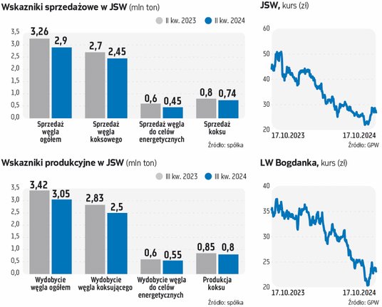 W ostatnim czasie mieliśmy do czynienia z poprawą notowań akcji zarówno JSW, jak i Bogdanki, ale powody wzrostu nie wynikają z lepszych prognoz makroekonomicznych, a bardziej z indywidualnych zdarzeń. – Patrząc na kurs JSW, to faktycznie na początku października mogliśmy obserwować euforię, która jednak szybko doczekała się korekty. Mieliśmy bowiem przeciek informacji ze spółki o roboczych planach naprawczych, co napawało optymizmem. Kiedy jednak okazało się, że to informacje nieoficjalne, a realizacja planów stoi pod wieloma znakami zapytania, kursy zaczęły spadać – przypomina Jakub Szkopek, analityk Erste Securites.