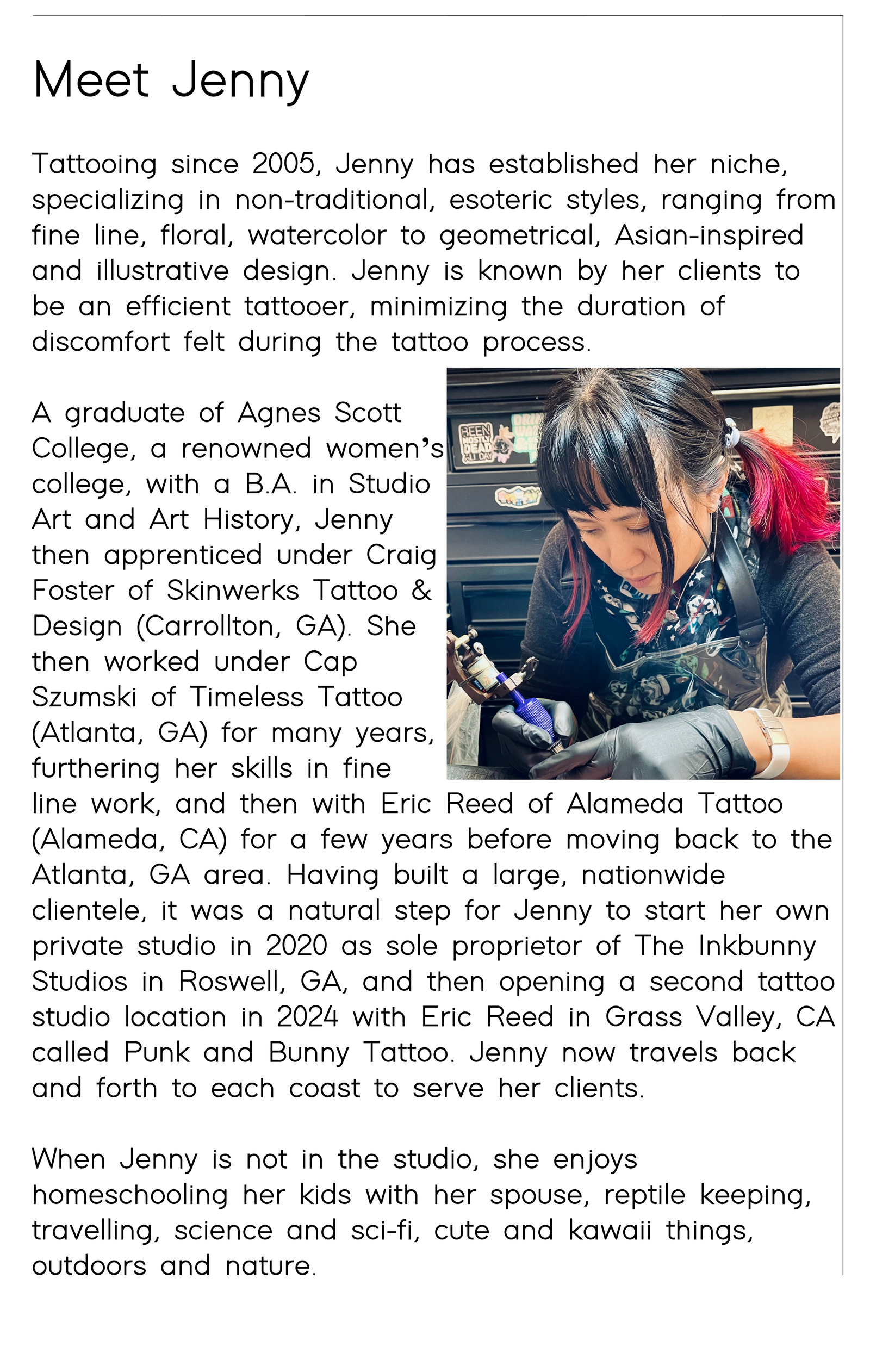 As a minority, woman owned small business, we are a safe space for all, and provide a high end experience for quality permanent artwork.