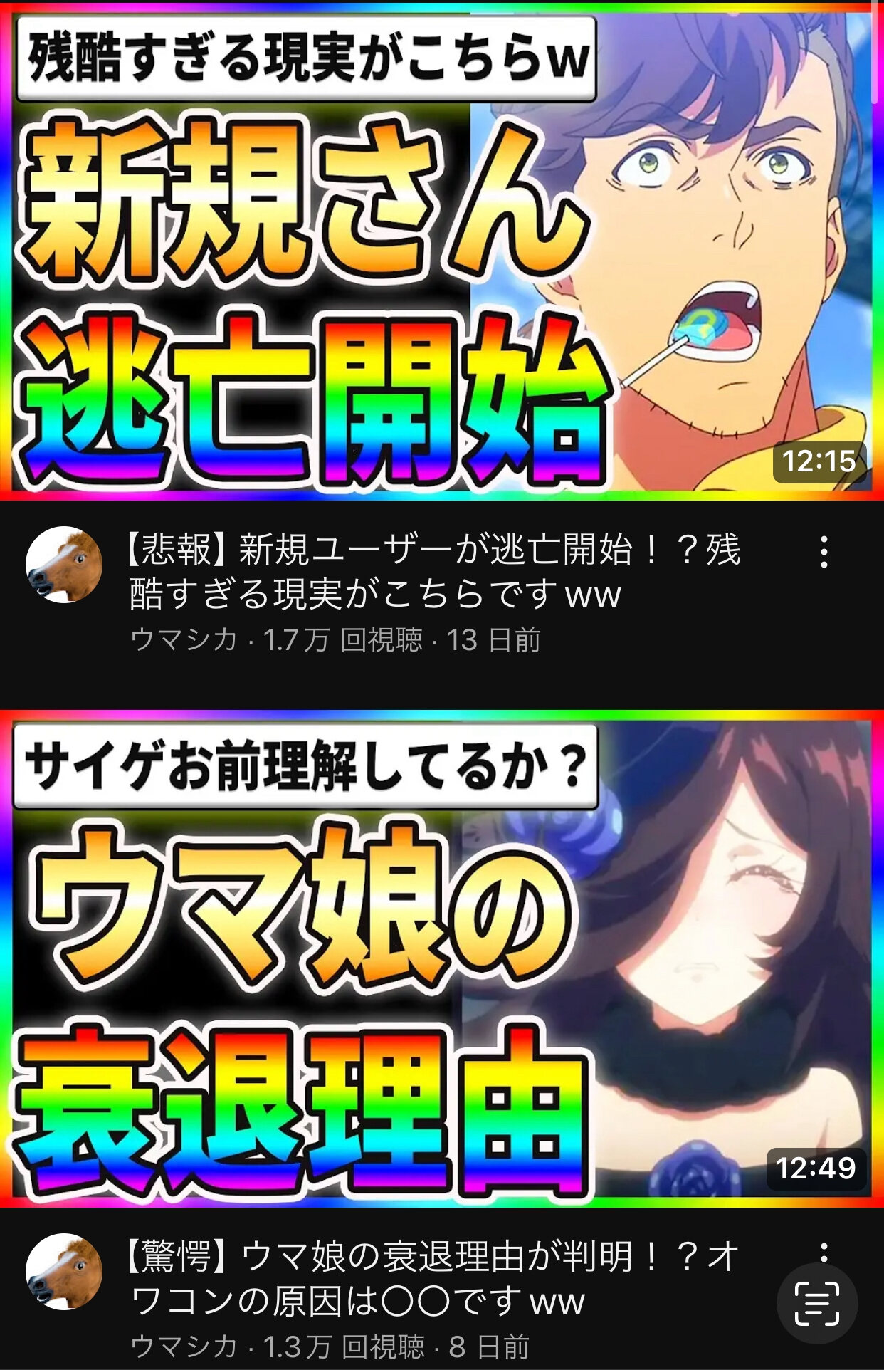 なあやっぱウマ廃人がマイナスの補填のために適当に動画にしてるだけじゃ…