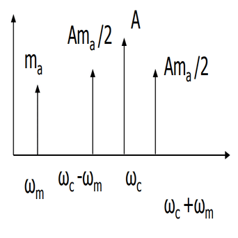 振幅変調波には、キャリアの周波数以外に、信号波の周波数との和と差の周波数成分が含まれます。