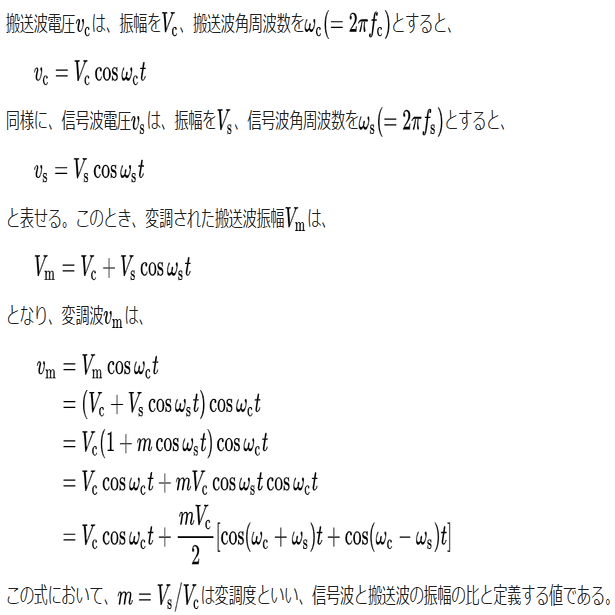 振幅変調波は次の式で表されます。