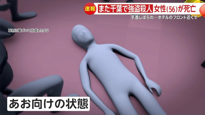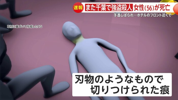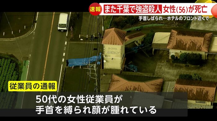 1日朝、千葉・市原市のホテルで、女性が手首を縛られた状態で死亡しているのが見つかり、警察は、強盗殺人事件として捜査本部を設置した。