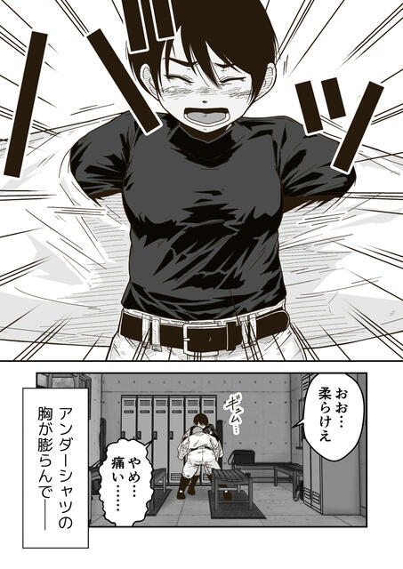 【エロ漫画・エロ同人誌】小柄でボーイッシュなJ○が他の部員にバレないように野球部に入部したんだけど、ゲスな先輩に気付かれてしまった!部室で二人きりの時に襲われておっぱい揉まれたり手マンされて中出しレイプされちゃう・・・