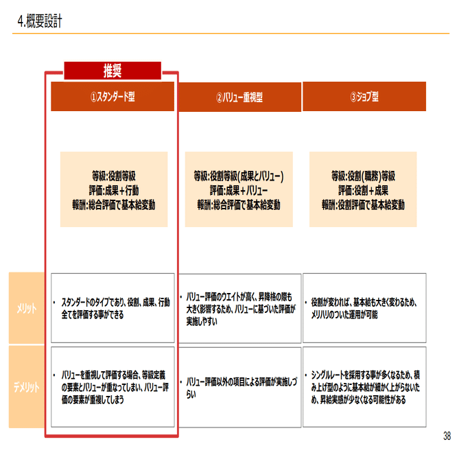 大きく分けて以下のスタンダード型、バリュー重視型、ジョブ型というものがわかれるような形になっています。