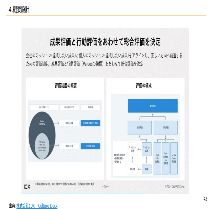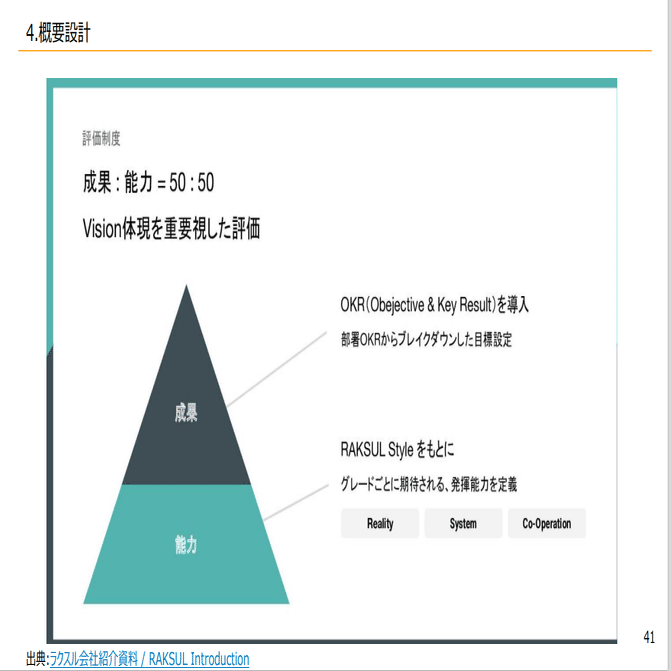 先ほどラクスルさんのように成果と行動も50%、50%という形で、基本的には均等で両方を見ていくパターンです。