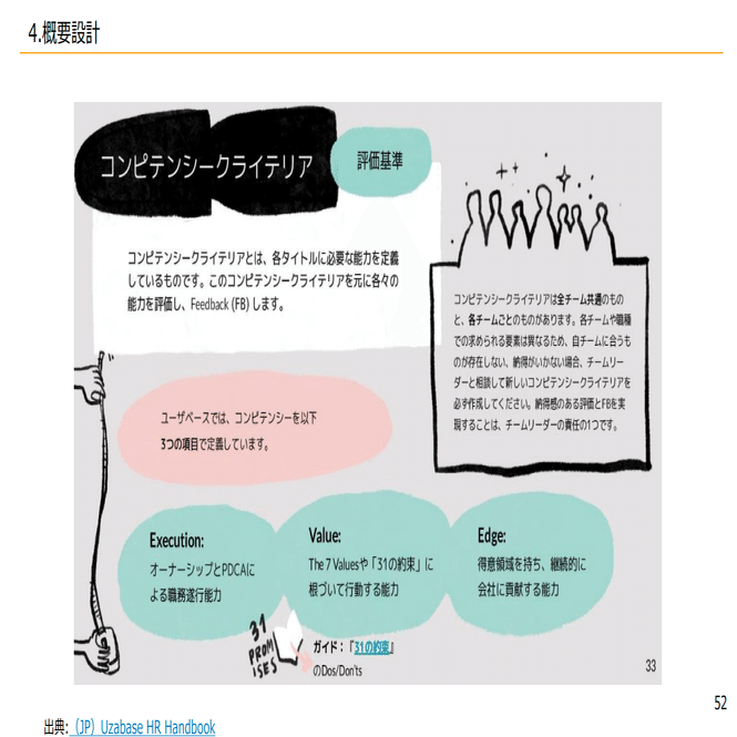 ユーザーベースさんの場合は、コンピテンシーは3つの項目で定義しており、Execution、Value、Edgeという形で、バリューも役割の中の一つに入っているんですけども、こういった項目をもとに点数を出して、その点数に応じてサイズが決まって、金額が決まるというイメージになっております。