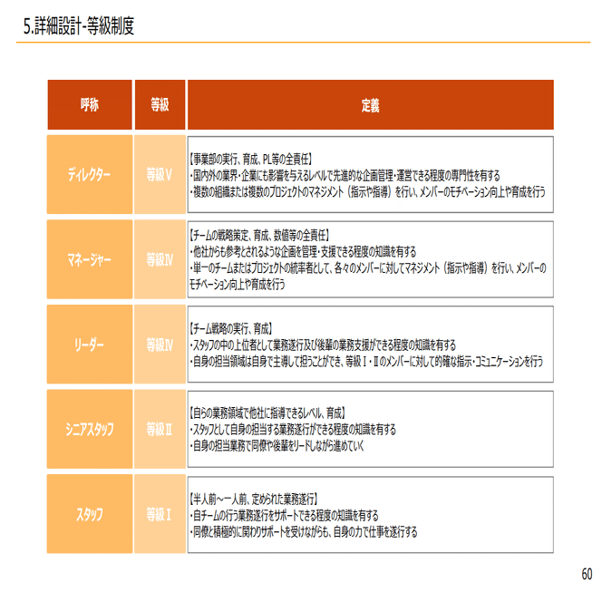 等級定義が役割に基づいて設定されており、この定義の充足度合いによって昇格や降格をしていきます。