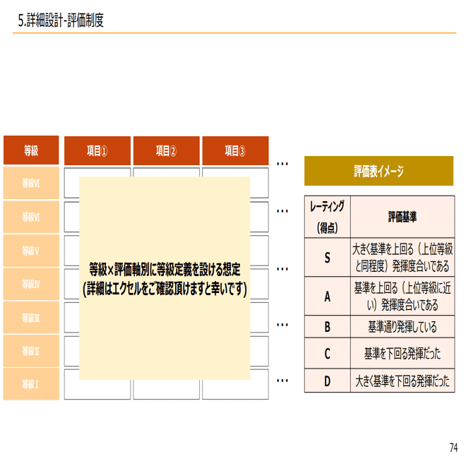 具体的なイメージで言うとその等級定義に基づいてその人の役割をスコアリングするようなイメージになってます。