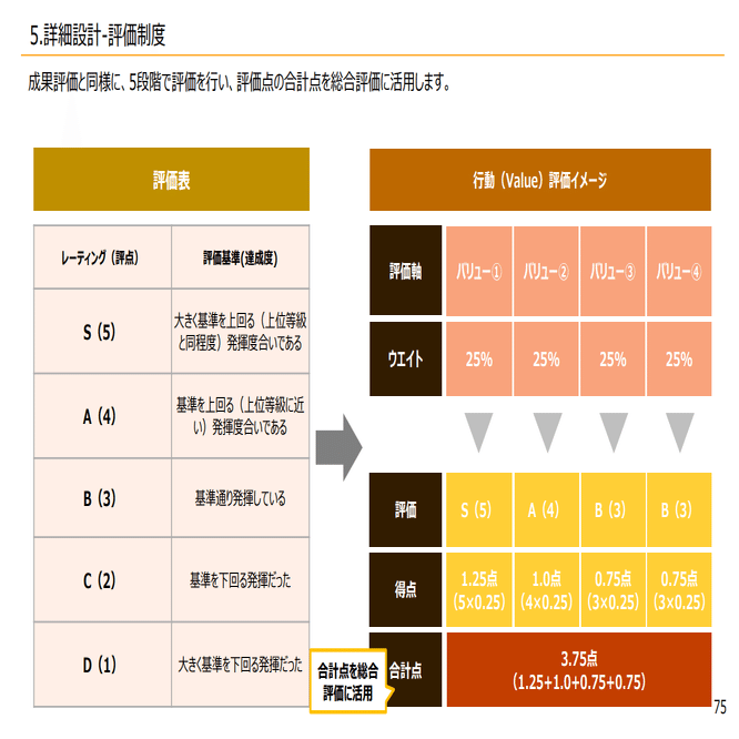 具体的には成果評価と行動評価があり、総合評価が出るというような形になっています。