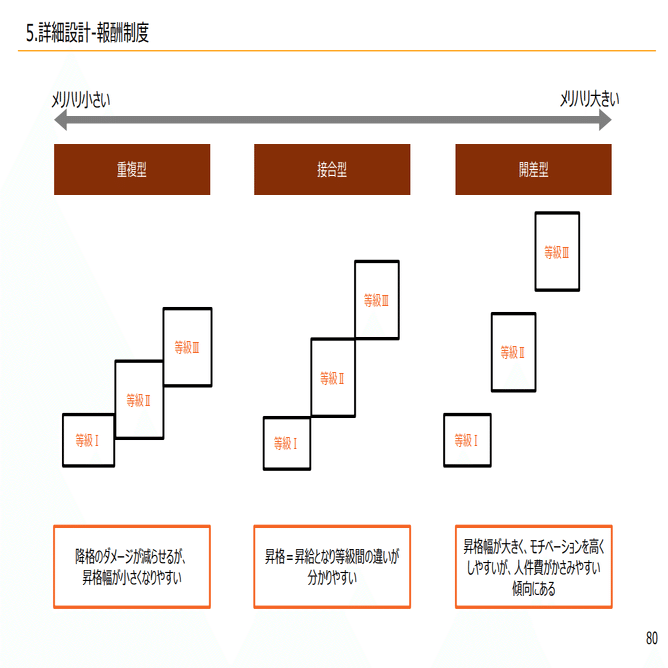 ローテーションがあって、長い間をかけて育っていくような組織に関しては能力が上がっていけば、ちゃんとその分報いられるような職能等級が多くなっていています。