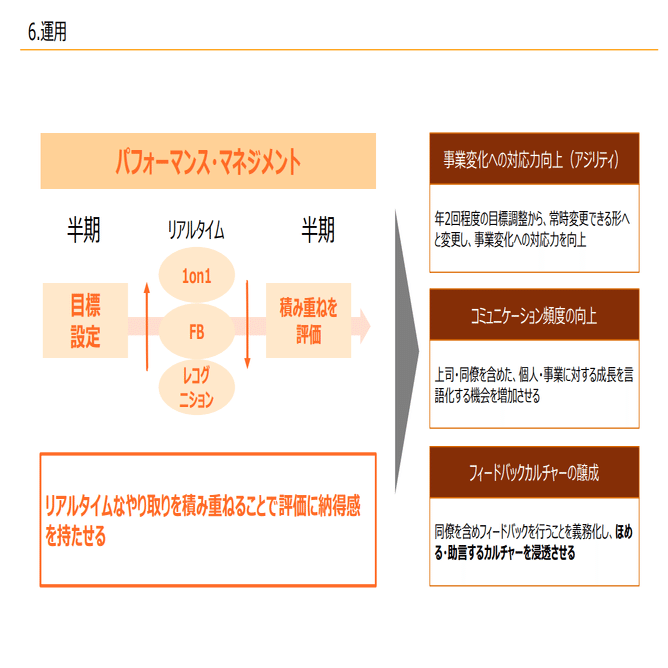 1年に1回目標立てて、中間評価して期末評価するというところだとやはり時代の変化やエンゲージメント高めていくところにはなかなか追いつかないことになってきています。