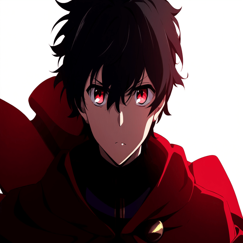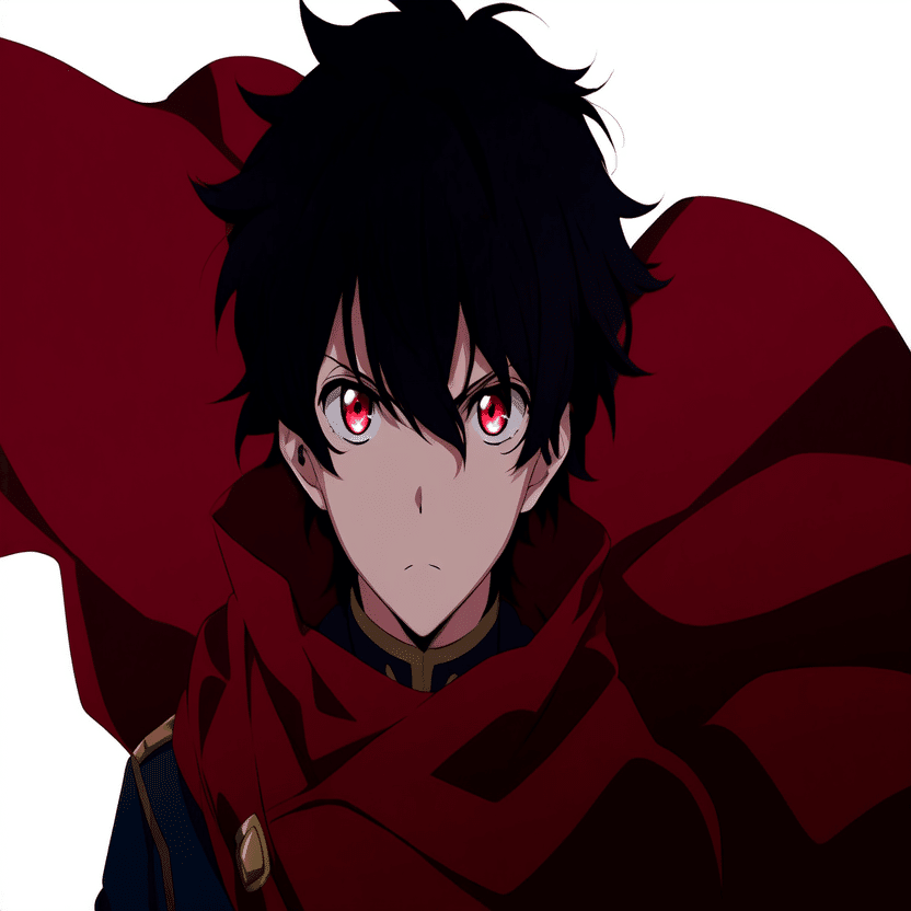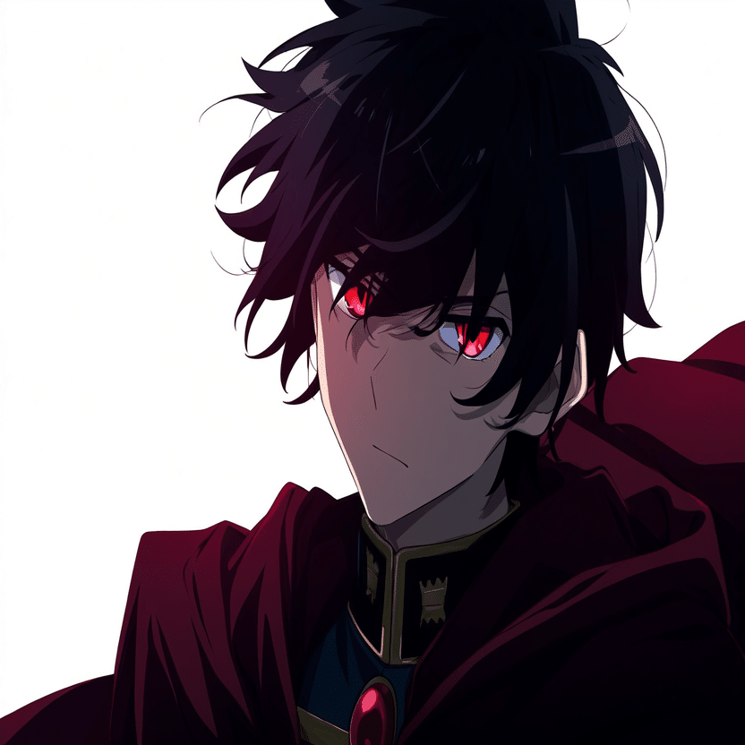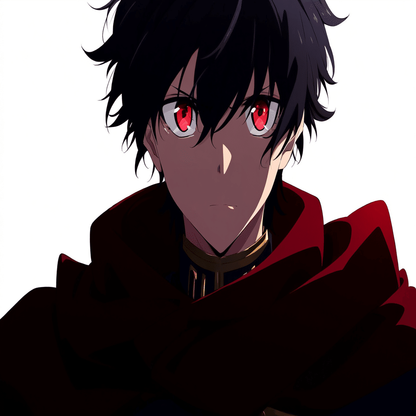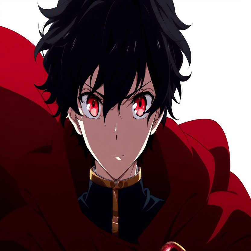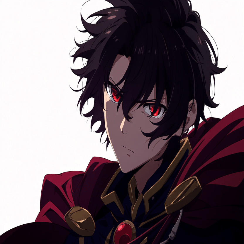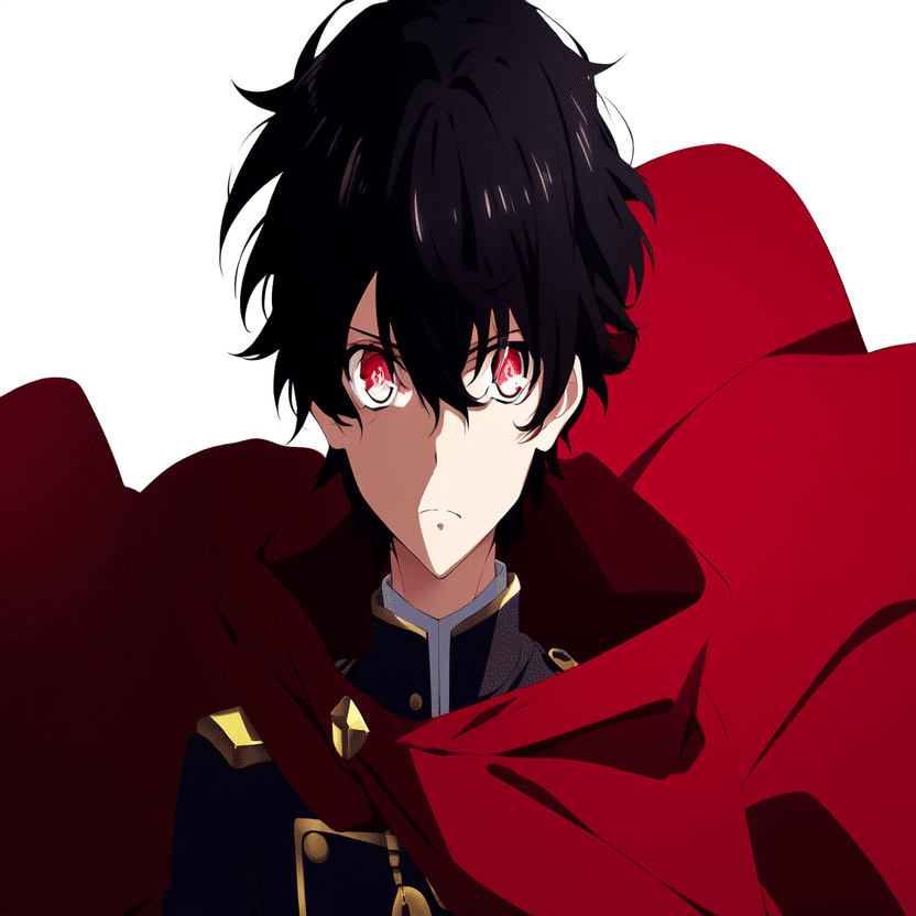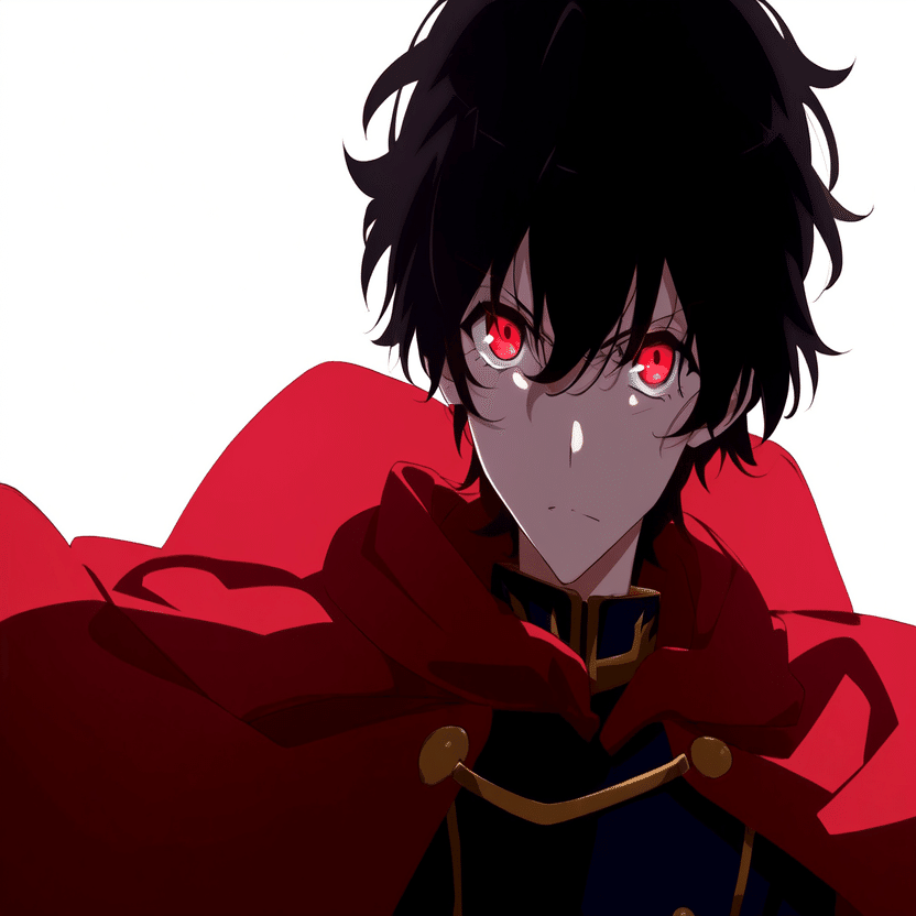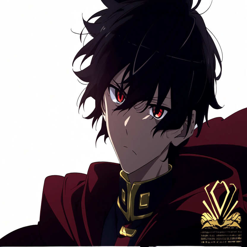 male, solo, short_hair, black_hair, red_eyes, cape, uniform, serious_expression, anime_style,white_background さてこのプロンプトをnovelAIに入れて本格的な検証の開始です。まずはi2iから行きましょう。