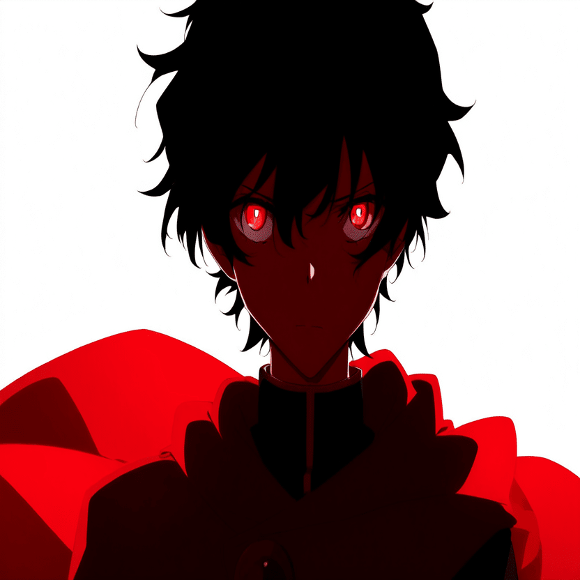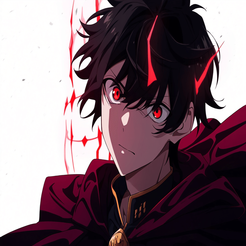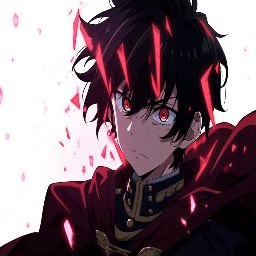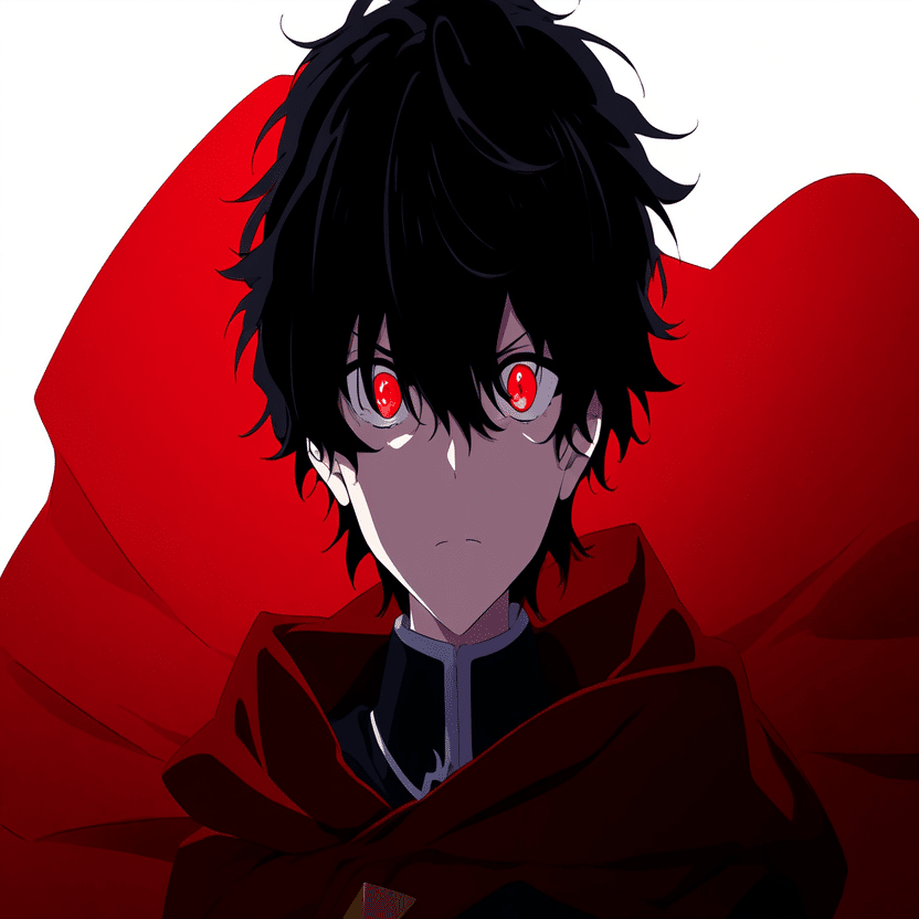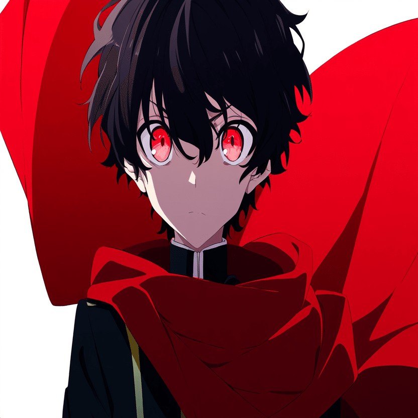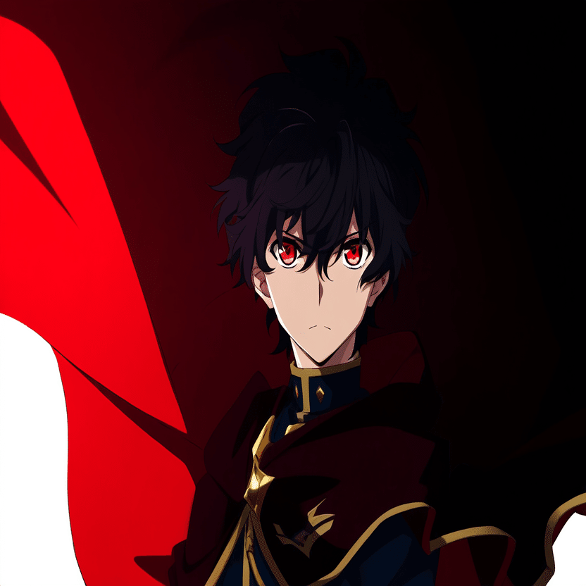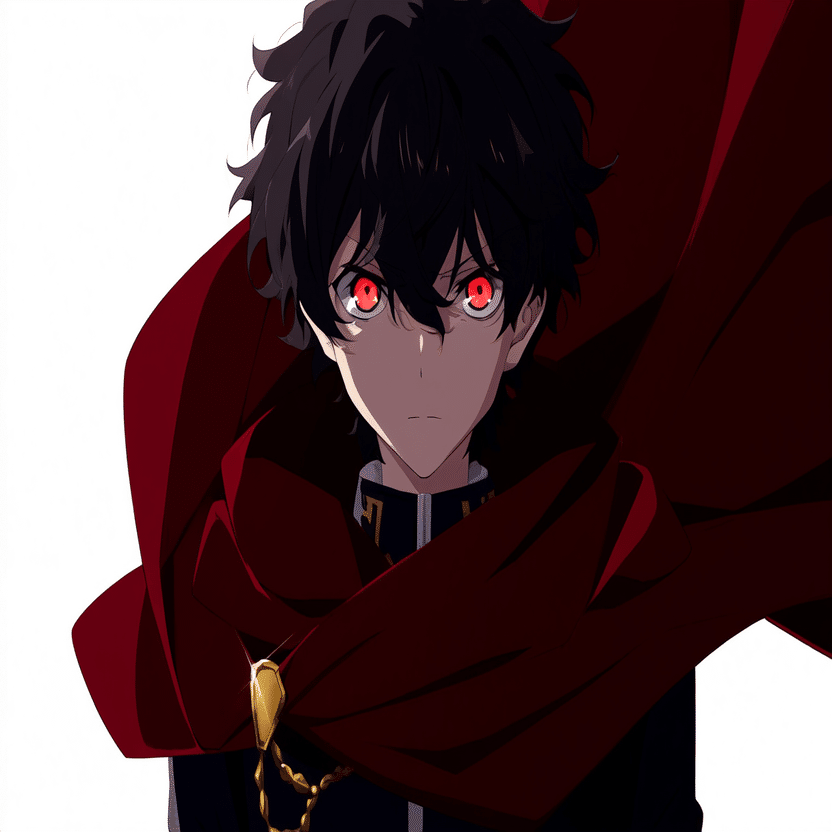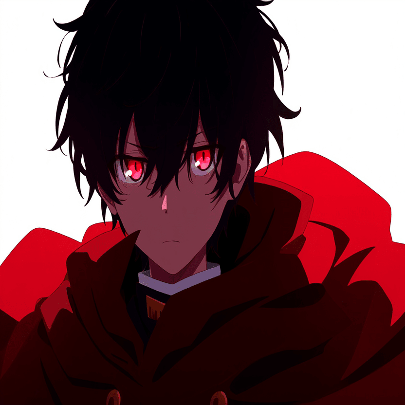 male, solo, short_hair, black_hair, red_eyes, cape, uniform, serious_expression, anime_style, text_overlay, NG_mark, no_reposting_text, Japanese_text, red_text, copyright_warning, white_backgroundNG_markなどのウォーターマークの生成に明らかに関連あるプロンプトが見えるので手動で抜き出します