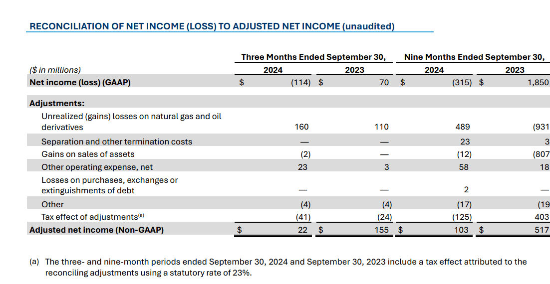 Expand Energy Adjusted Net Income Calculation And Comparison (Expand Energy Third Quarter 2024, Earnings Press Release)