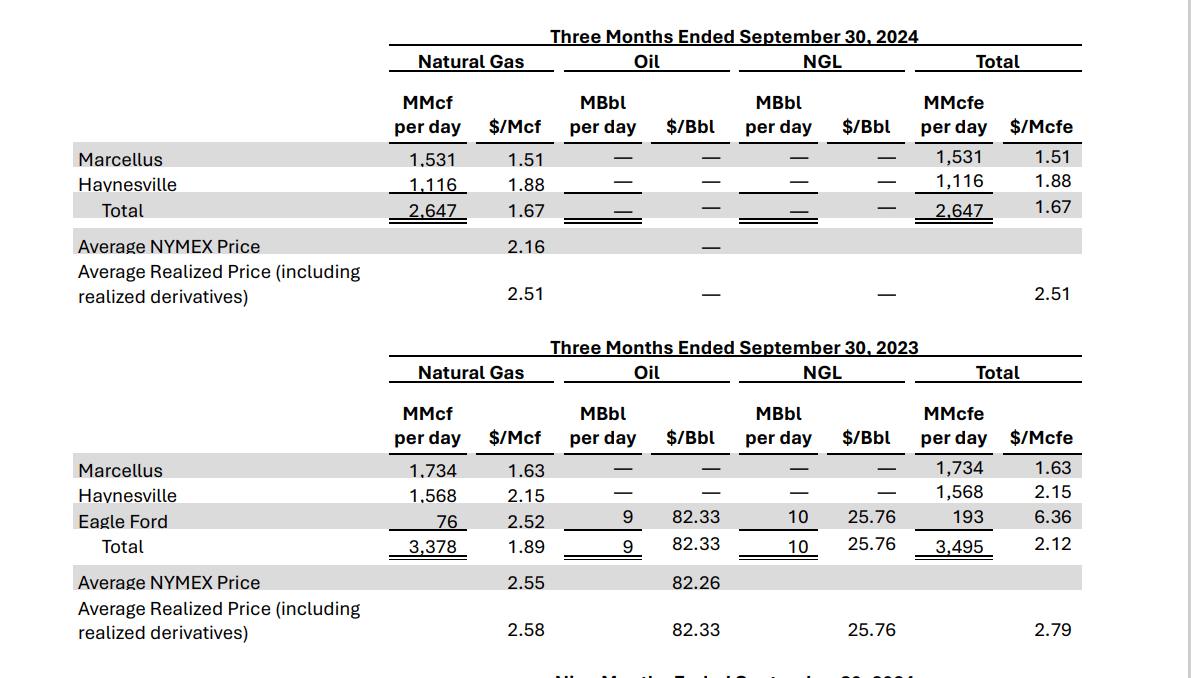Expand Energy Third Quarter 2024 Production Comparison (Expand Energy Third Quarter 2024, Earnings Press Release)