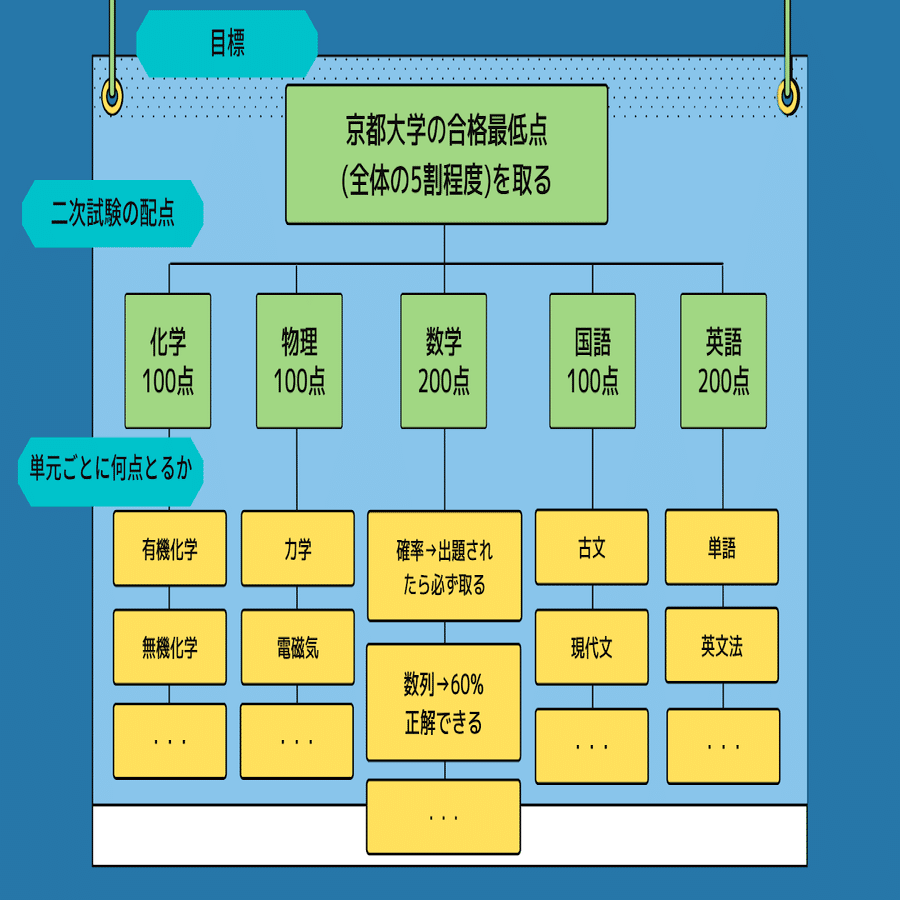 3ヶ月間で京大に合格するためには、ゴールを細分化して目標を立てる必要があります。