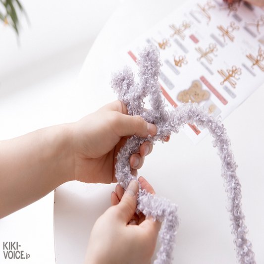 耳の長さや形によってどんな動物になるのか決まるのですが、古川さんはウサギをチョイス。モールを二つ折にしてから、耳になる部分を長めにねじります。