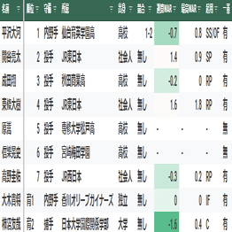 【寸評】外れ外れ1位で上原健太を獲得。身長190センチ、最速151キロ、の大型左腕。プロ入り後は、鳴かず飛ばずだったが、2022~2023年は先発ローテに定着し一定の成績を残した。
