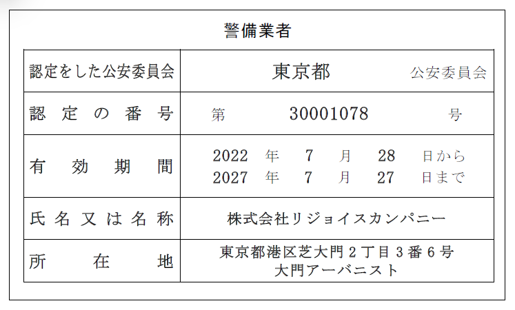 医療関連サービスマーク(院内清掃業務)医療関連サービスマーク(院内滅菌消毒業務)医療関連サービスマーク(医療機器保守点検業務)医療機器修理業許可高度管理医療機器等[販売業・貸与業]許可建設業一級建築士事務所建築物飲料水貯水槽清掃業建築物環境衛生総合管理業建築物ねずみ昆虫等防除業警備業 (警備業認定標識はこちら)一般労働者派遣事業有料職業紹介事業ISO9001(品質マネジメントシステム)ISO14001(環境マネジメントシステム)プライバシーマーク