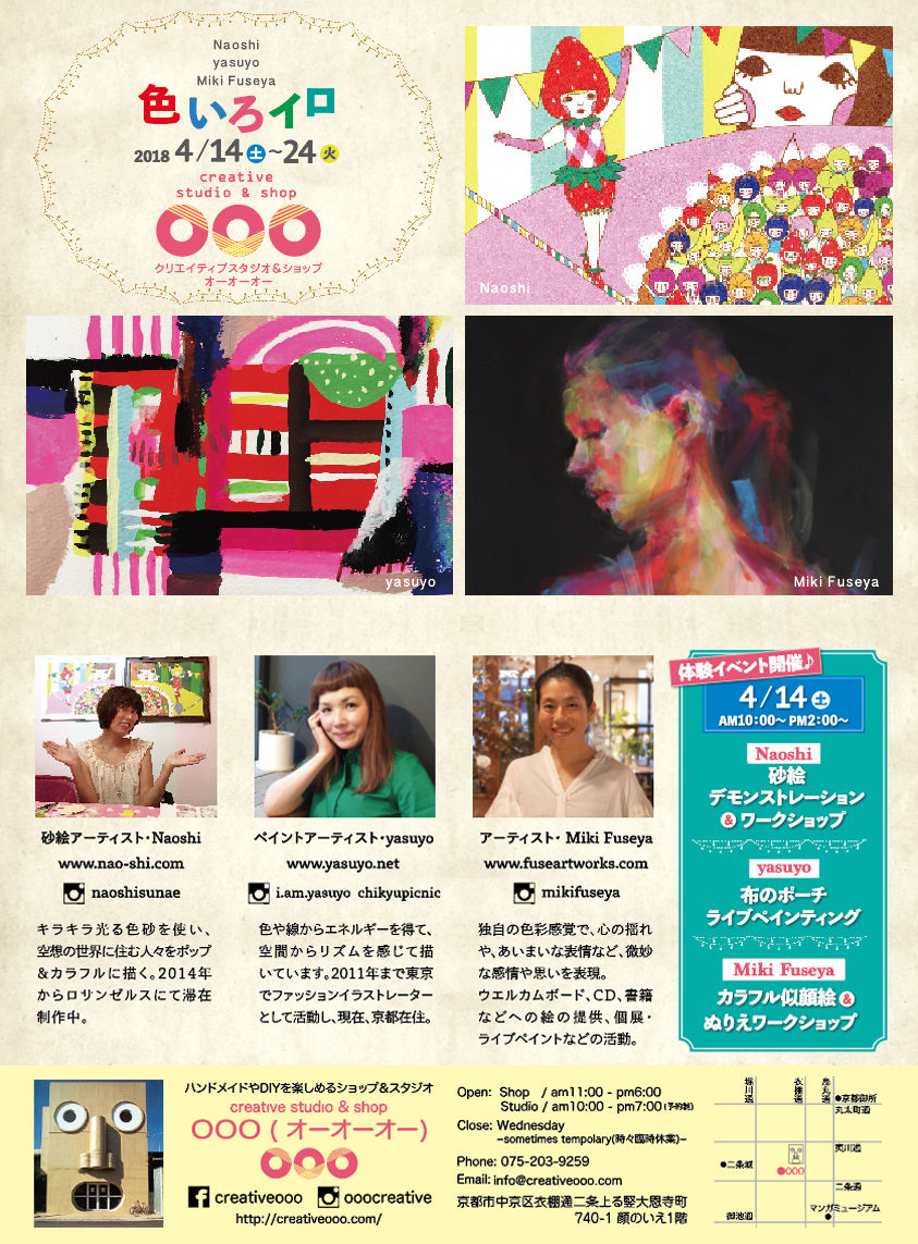 creative studio & shopOOO(オーオーオー)で3人展を行います。