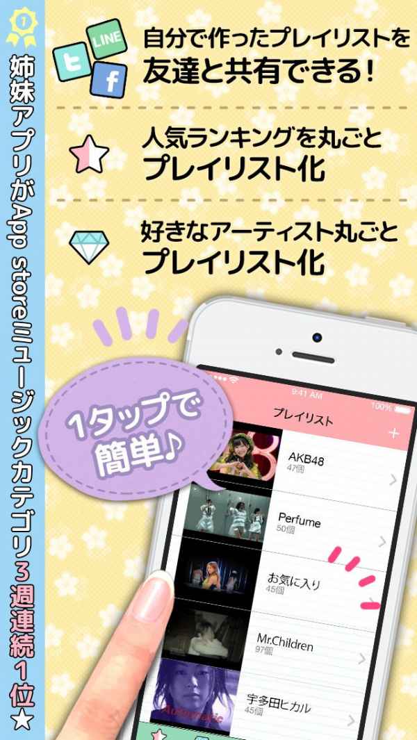 女の子が大好きな人気の曲が全て無料で聞き放題!