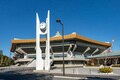 目や神経などの跡も残る世界最古のオタマジャクシの化石。3Dプリントモデルとともに展示されている[2024年10月28日、アルゼンチン・ブエノスアイレス](C)REUTERS/Agustin Marcarian