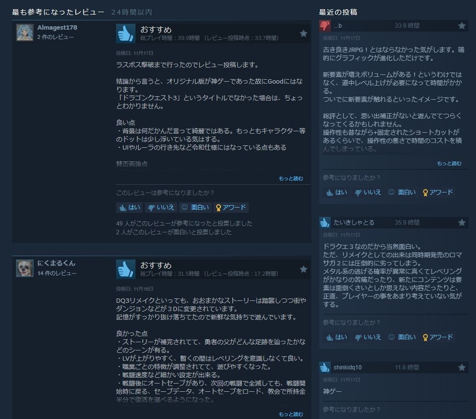 そろそろクリアしてきた奴がレビューしだしたか