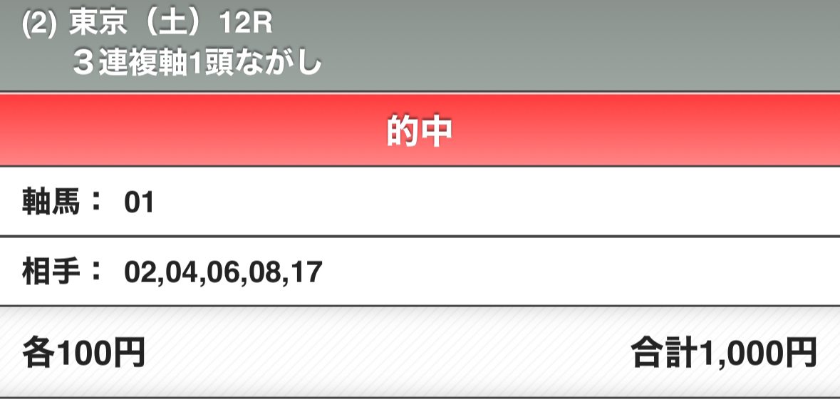 そんな経緯で、「とほほ・・・もうAIで金儲けはこりごりだよぉ~」(例の◯の中に顔のやつ)みたいなオチがやりたかったのですが、なんと最終レースでオッズ2275.3倍の馬券が当たってしまったので見え方が変わってしまいました。