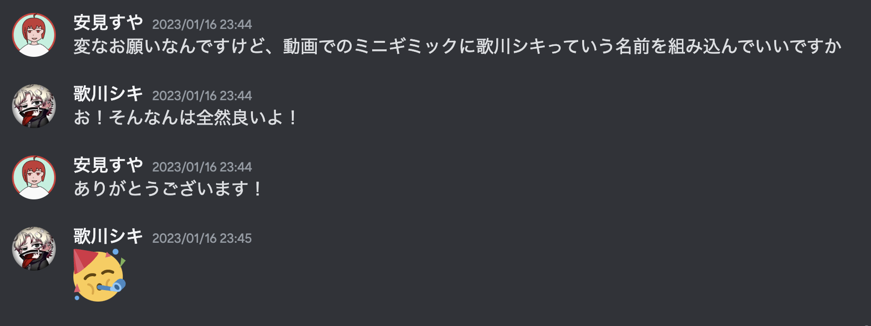 ちなみに②、謎に二人の名前を使うことは事前に許可を得ています。