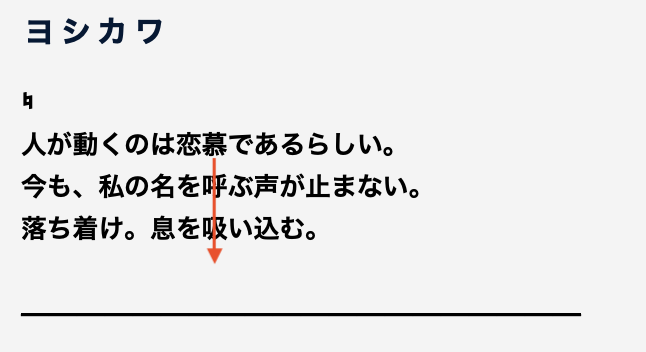ここで、ヨシカワのロゴがなぜか縦書きであるのとこのシーンでわざわざ表示されているというところに着目すると、ロゴと答えの位置を合わせるという発想が生まれます。