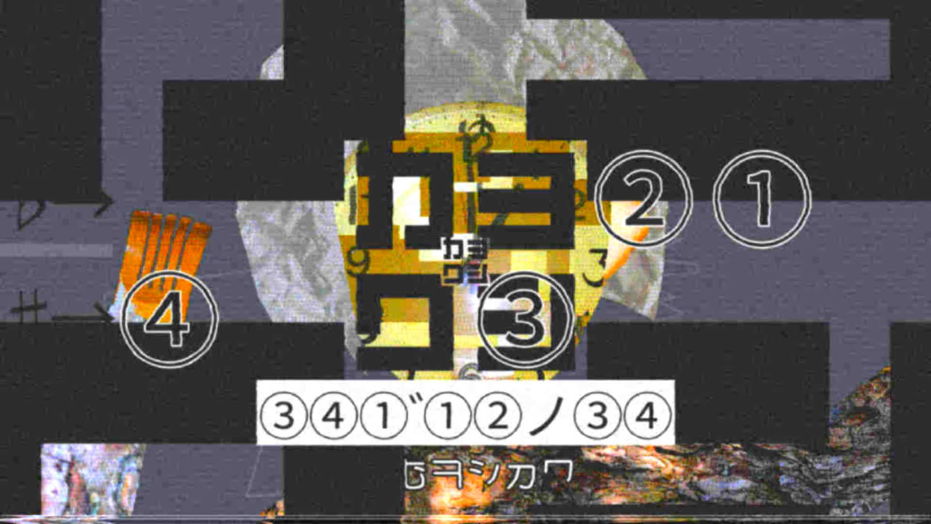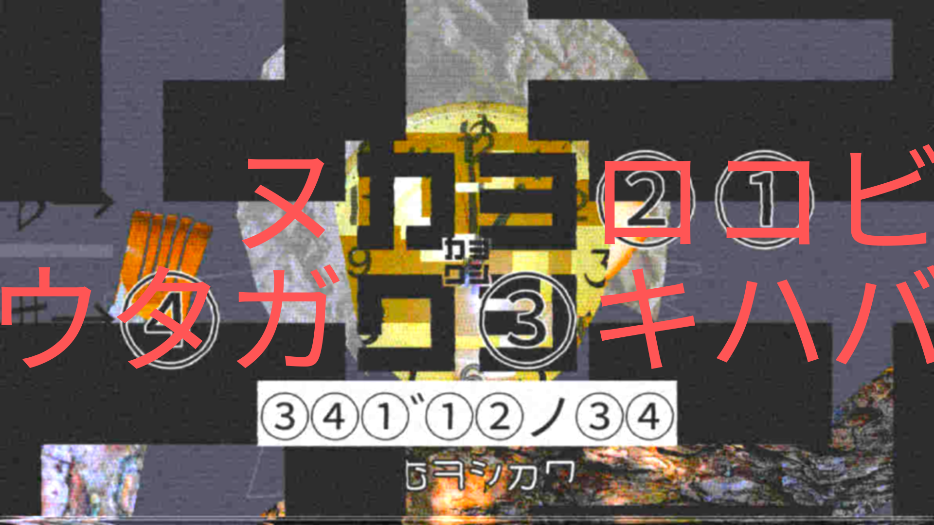 ですが♮の問題はなぜか「③④①①゛②ノ③④」と③から始まってますね。これはすこし不自然。ただ動画をよく見ると、文字が点滅し①②③④のみが表示されるフレームがあります。