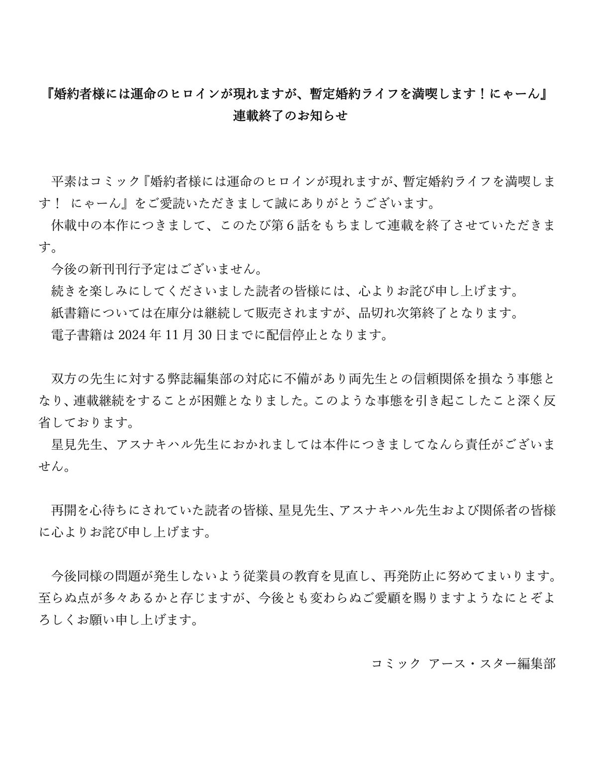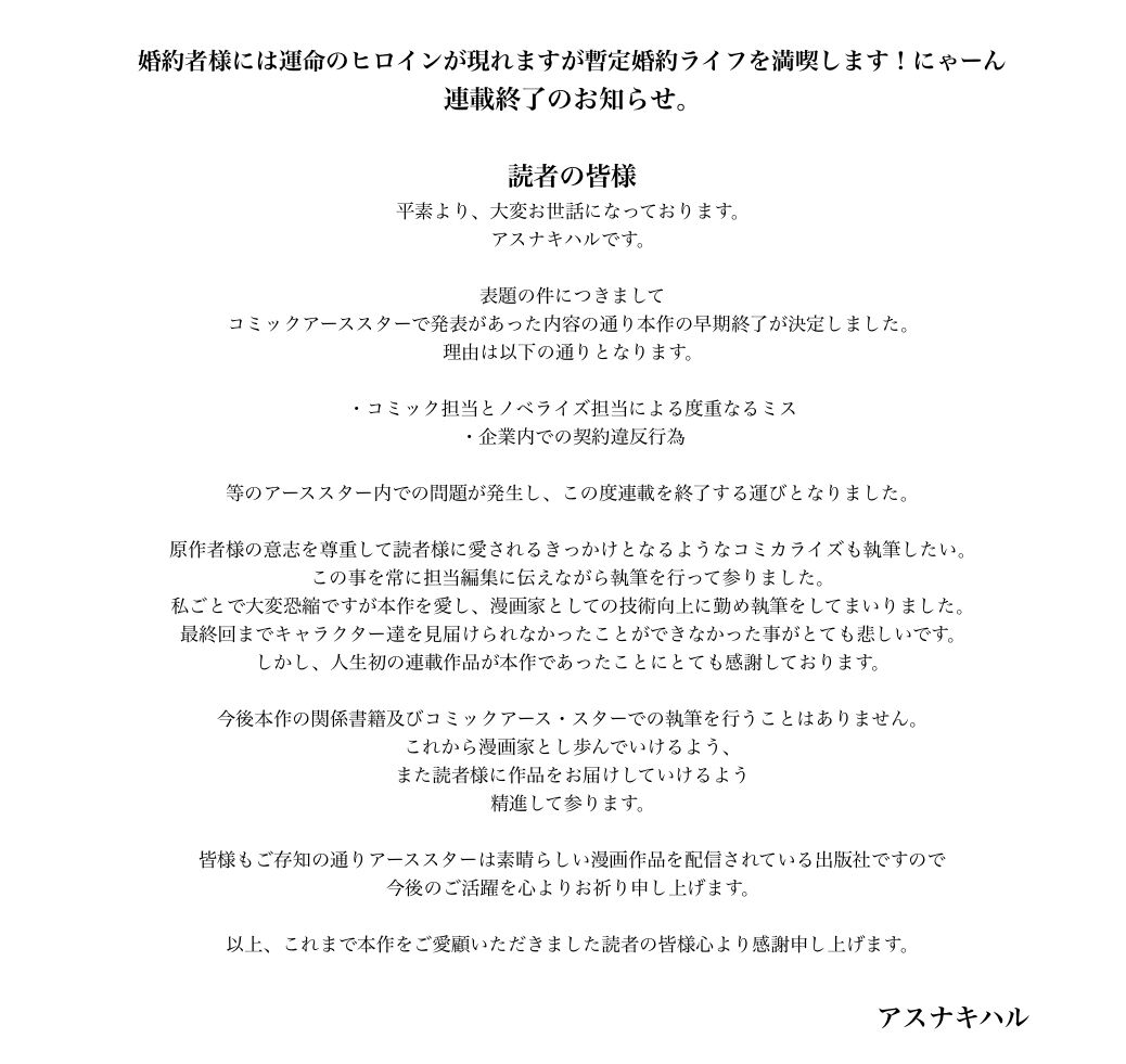 これだけ読んだら「編集部がやらかして原作・コミカライズ双方の先生に愛想尽かされた」って読めちゃうけど、それで合ってるのかな。
