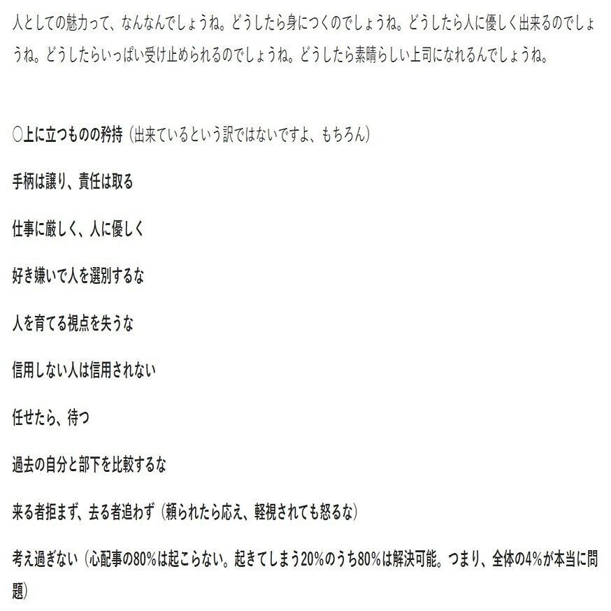 「どうしたら人に優しく出来るのでしょうね。どうしたらいっぱい受け止められるのでしょうね。どうしたら素晴らしい上司になれるんでしょうね。」