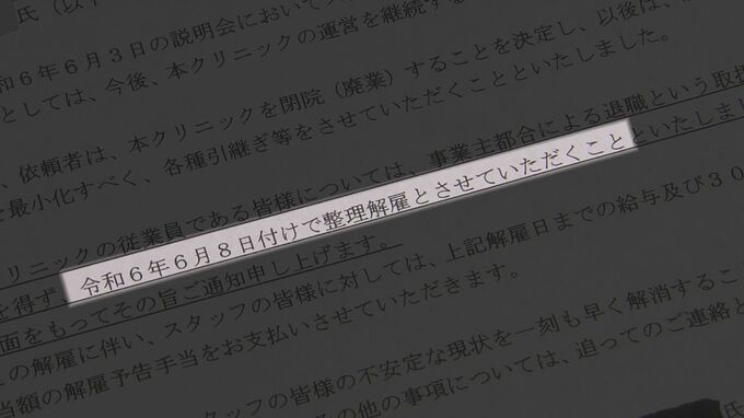 院長は当初関与を否定していましたが、数日後、従業員向けの説明会で盗撮を認め、後日文書で「運営の継続が困難で廃業する」として、当時勤めていた従業員のほぼ全員、13人を整理解雇を伝えたということです。