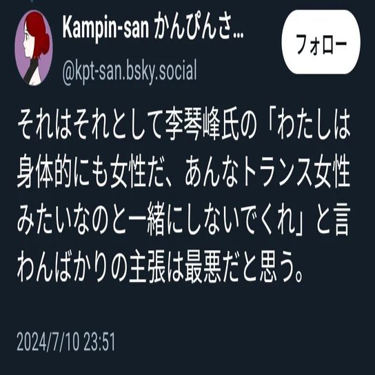 「かんぴんたん」氏は匿名アカウントなので、私は手間暇かけて氏を特定するつもりはありません。トランス当事者に不要な悲嘆を増やしたくないという気持ちも変わらないので、私から氏に対して提訴するつもりも、今のところありません。