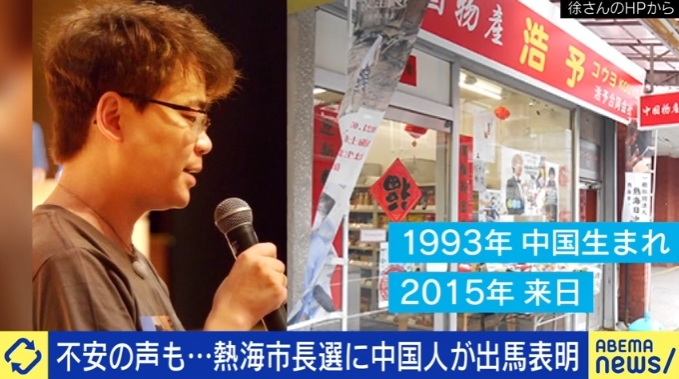 注目されたのは2026年の熱海市長選に立候補を表明した、31歳・中国出身の徐浩予氏。中国生まれの徐氏が来日したのは2015年。去年10月に熱海市内で中国物産のお店を開業し、生活している。そんな彼が立候補を考えるきっかけとなったのは、2021年、熱海市を襲った土石流災害だった。当時、徐氏も被災者の一人として苦しむ中、市長の対応に不満を感じ、政治を変えたいとの思いを抱いたという。