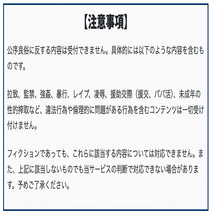 以下に該当するコンテンツは対応できません。