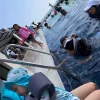 안전요원이 잠수해가면서 쓰레기나 부유물 큰거를 직접 청소하고